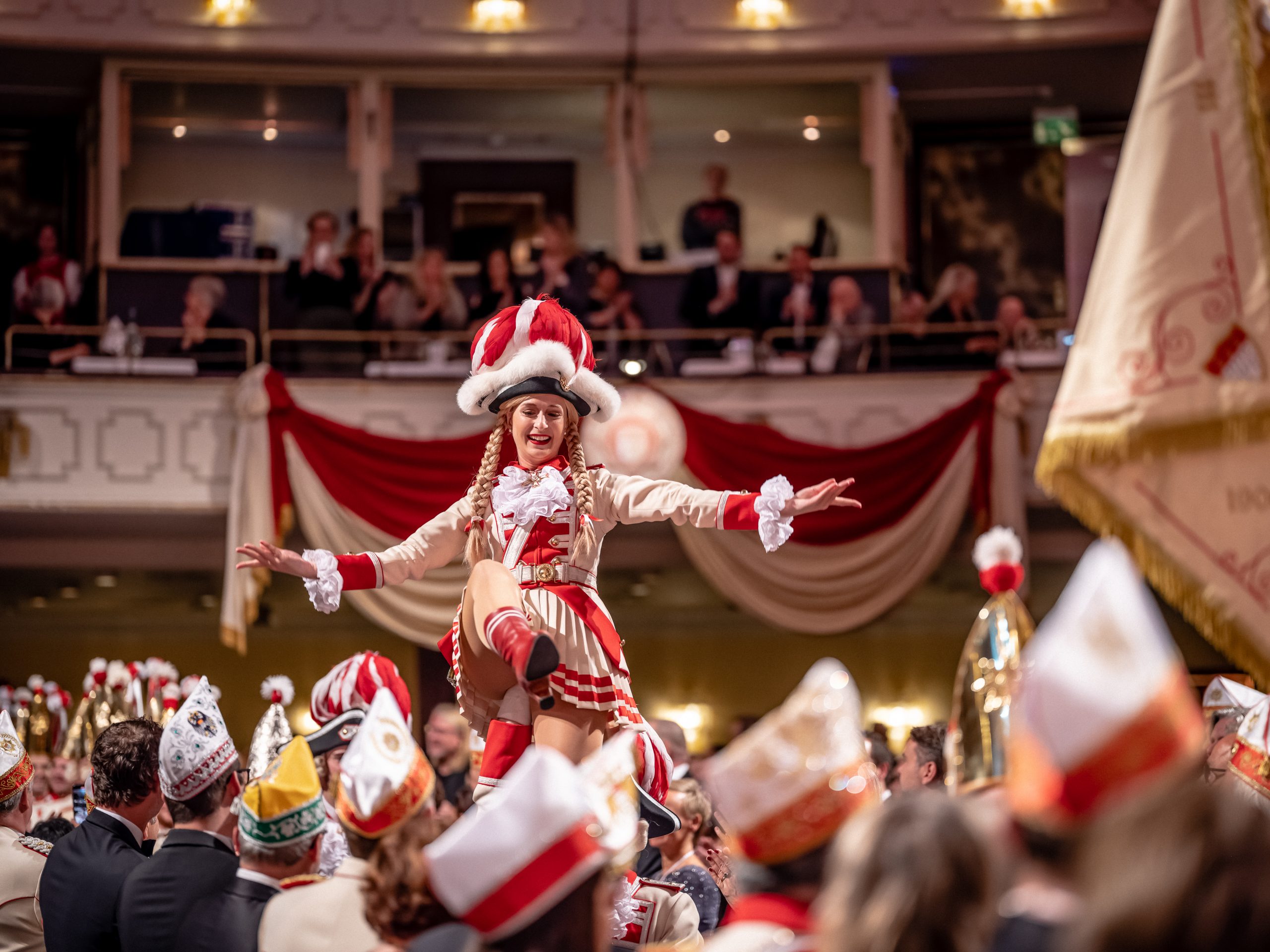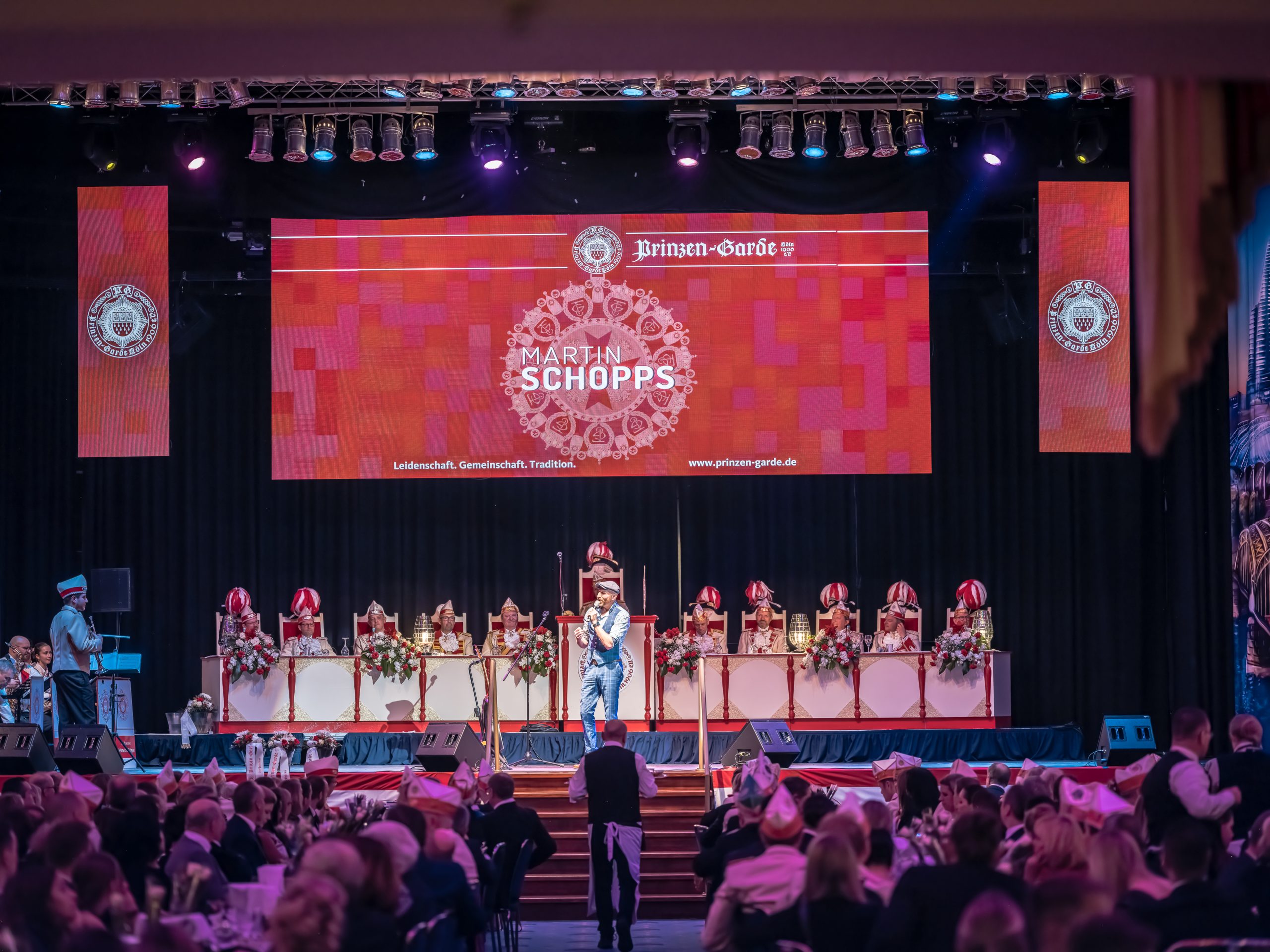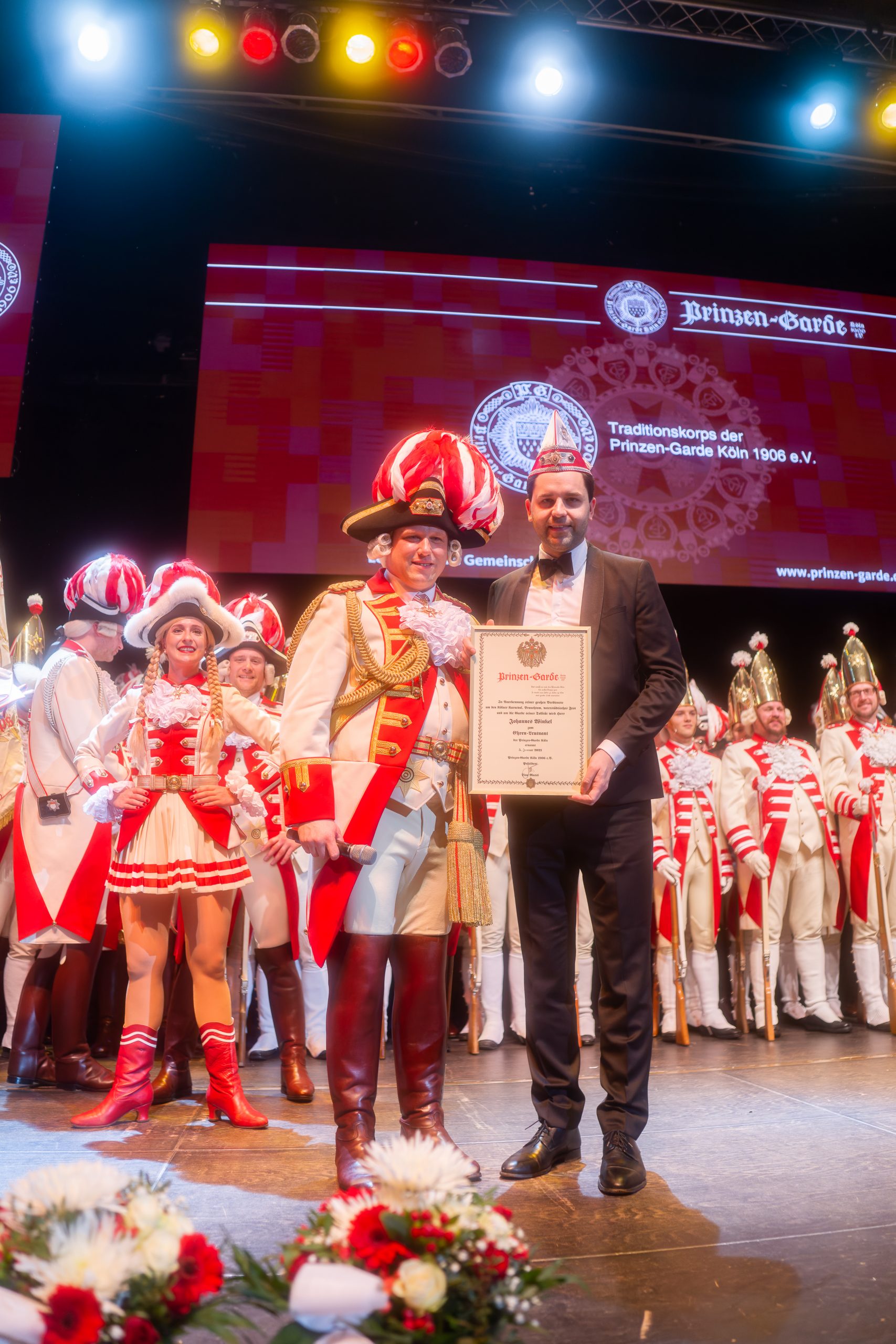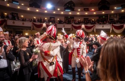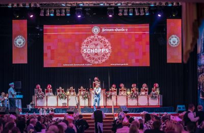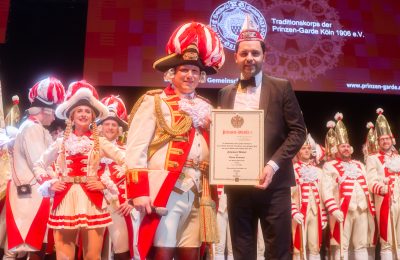 Tanzpaar Sandra Wüst und Tommy Engel präsentierten sodann ihren neuen Tanz der Regimentstochter, ein Traum nach zwei Jahren Corona-Pause. Direkt zu Beginn der Sitzung wurde der neue Bundesvorsitzende der Jungen Union, Johannes Winkel, vom Prinzen-Garde Präsidenten Dino Massi zum Ehrenleutnant der Prinzen-Garde ernannt. Eine Freude und Ehre für beide Seiten. Das Programm wusste ebenfalls zu begeistern. Die Mischung zwischen Rednern (Martin Schopps, Der Tuppes vum Land, Guido Cantz), Musik (Kasalla, Klüngelköpp, Cat Ballou) und Dreigestirn war auf dem bekannten Prinzen-Garde Niveau: erstklassig. Wie üblich schloss Tenor Norbert Conrads mit „am Dom zu Kölle“ die Sitzung.