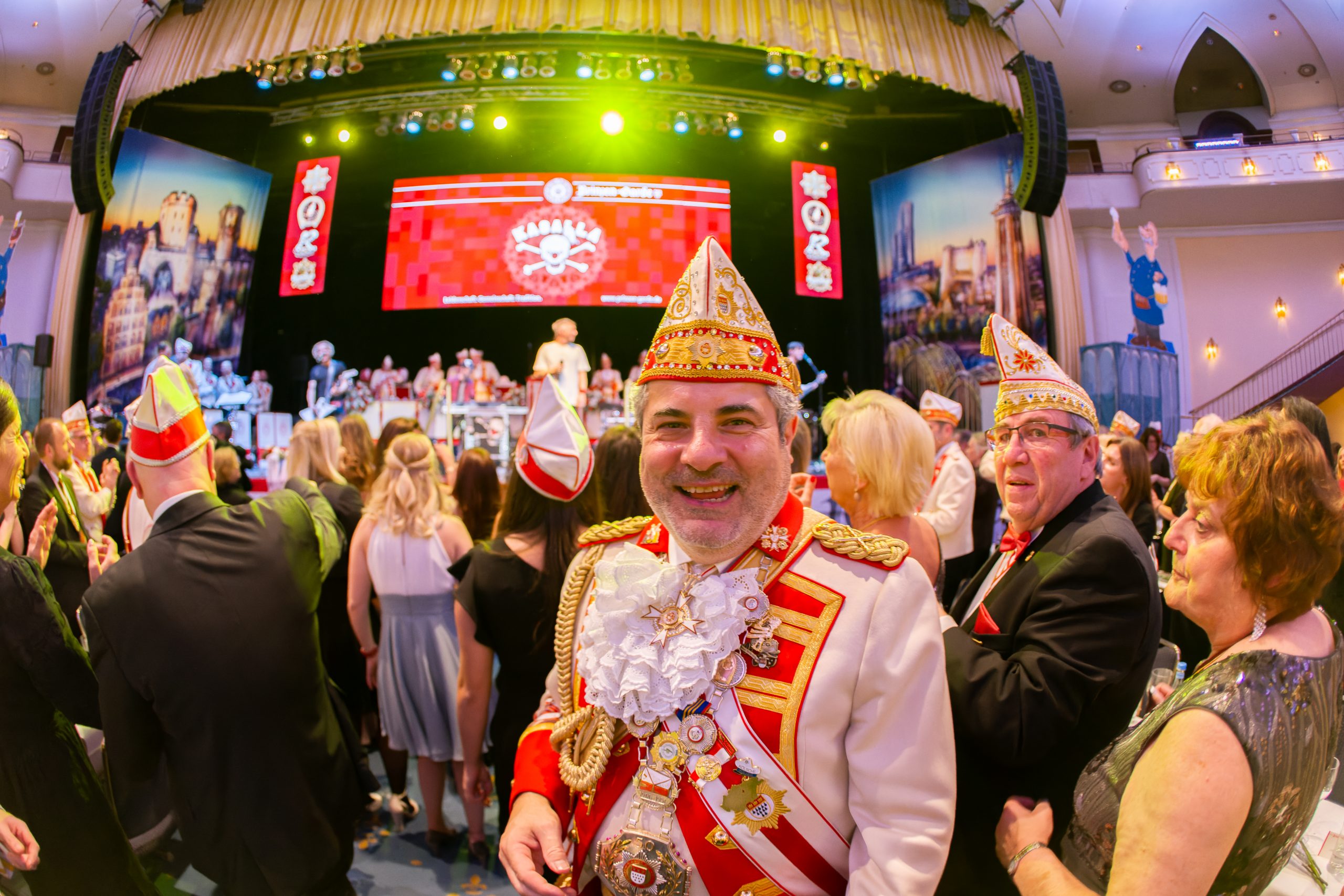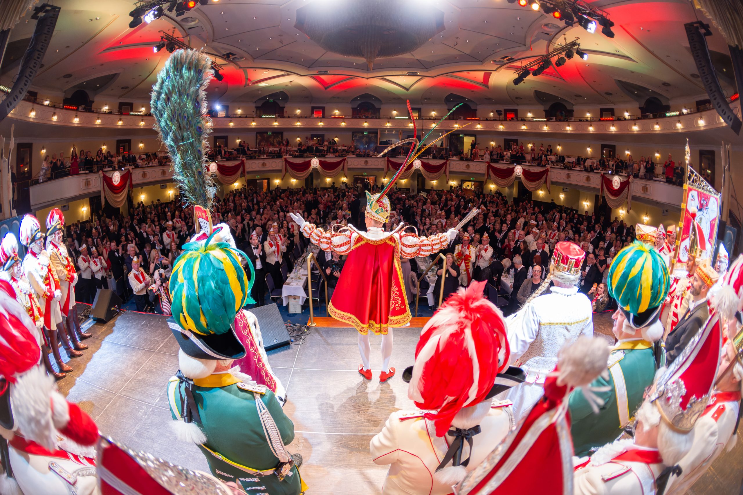 Natürlich begann es mit dem traditionellen Aufzug des großen Korps mit Regimentsspielmannszug. Dabei waren es diesmal die PG Pänz, die den Saal emotional aufheizten. Der erst 6-jährige Christoph Ollig moderierte fehlerfrei und selbstbewusst „seine“ PG Pänz vor dem nahezu ausverkauften Festsaal des Maritim Hotels an.