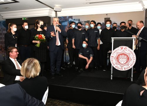 Bei all den Widrigkeiten, die zu überwinden waren, gab es doch etwas Karneval und das war tröstlich für die „kölsche Seele“. Die gut 200 Gäste des Abends konnten Dino nur zustimmen, denn fast alle Anwesenden haben es miterlebt. Der Januar, sagen wir, war sehr ruhig. Dann nahmen die Aktivitäten im Februar richtig Fahrt auf und erinnerten etwas an normalen Karneval. Daran hatten, so fuhr Dino fort, viele Korpskameraden einen großen Anteil. Schriftführer Marcus Gottschalk und Literat Dennis Hille mussten so manches Mal „zaubern“, damit z.B. ein Litewka-Abend oder unser „Hinsetzen! GardeDanz“ doch spontan stattfinden konnten. Wir alle freuen uns auf 2023, wo wir hoffentlich wieder unser Brauchtum mit all seinen Fassetten leben können.
