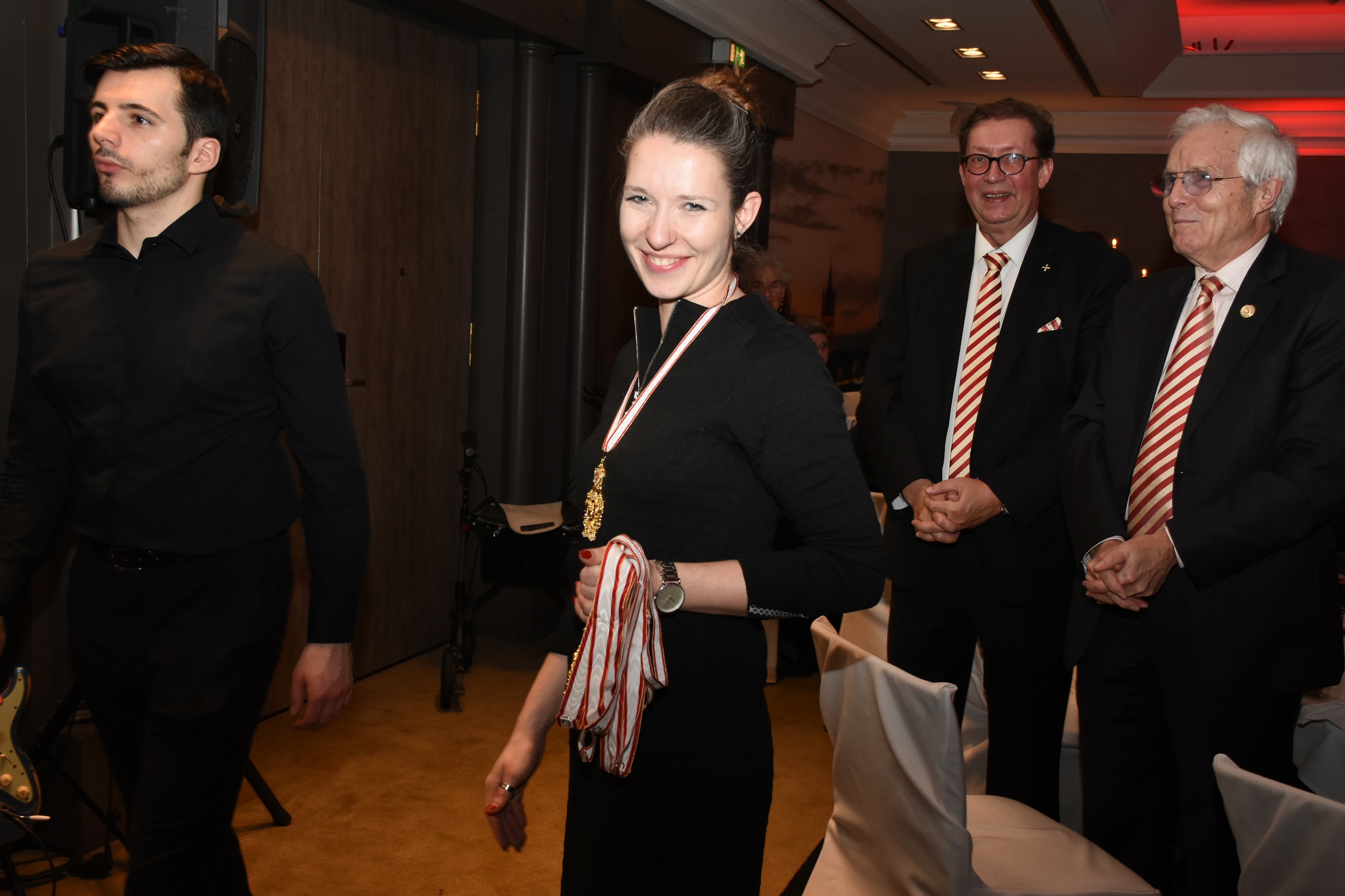 Alle zu nennen, die ein Ehrenamt ausüben, würde diesen Rahmen sprengen. Aber unserem Kommandanten Marcel Kappestein, Schatzmeister Thomas Haubner, Vorstandsmitglied Gustav Brüninghaus und den vier Korpsführern dankte Präsident Dino Massi persönlich für die geleistete Arbeit in der vergangenen Session. Aber auch die Neuen im Amt, wie unser Prinzenführer Marcus Heller oder Equipe Chef Gerry Bingener, haben ihre Aufgaben im ersten Jahr hervorragend gemeistert. Wo wir gerade bei Zahlen sind: Michael Palm führte in seiner dritten Session als Adjutant des Prinzen den diesjährigen Prinz Karneval Christian sicher durch Kölns Säle und unser Literat Dennis Hille sorgte nun schon in seiner fünften Session für ein tolles und abwechslungsreiches Programm, welches die Gäste begeisterte.
