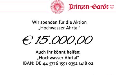 Flutkatastrophe: Die Prinzen-Garde Köln 1906 e.V. unterstützt.