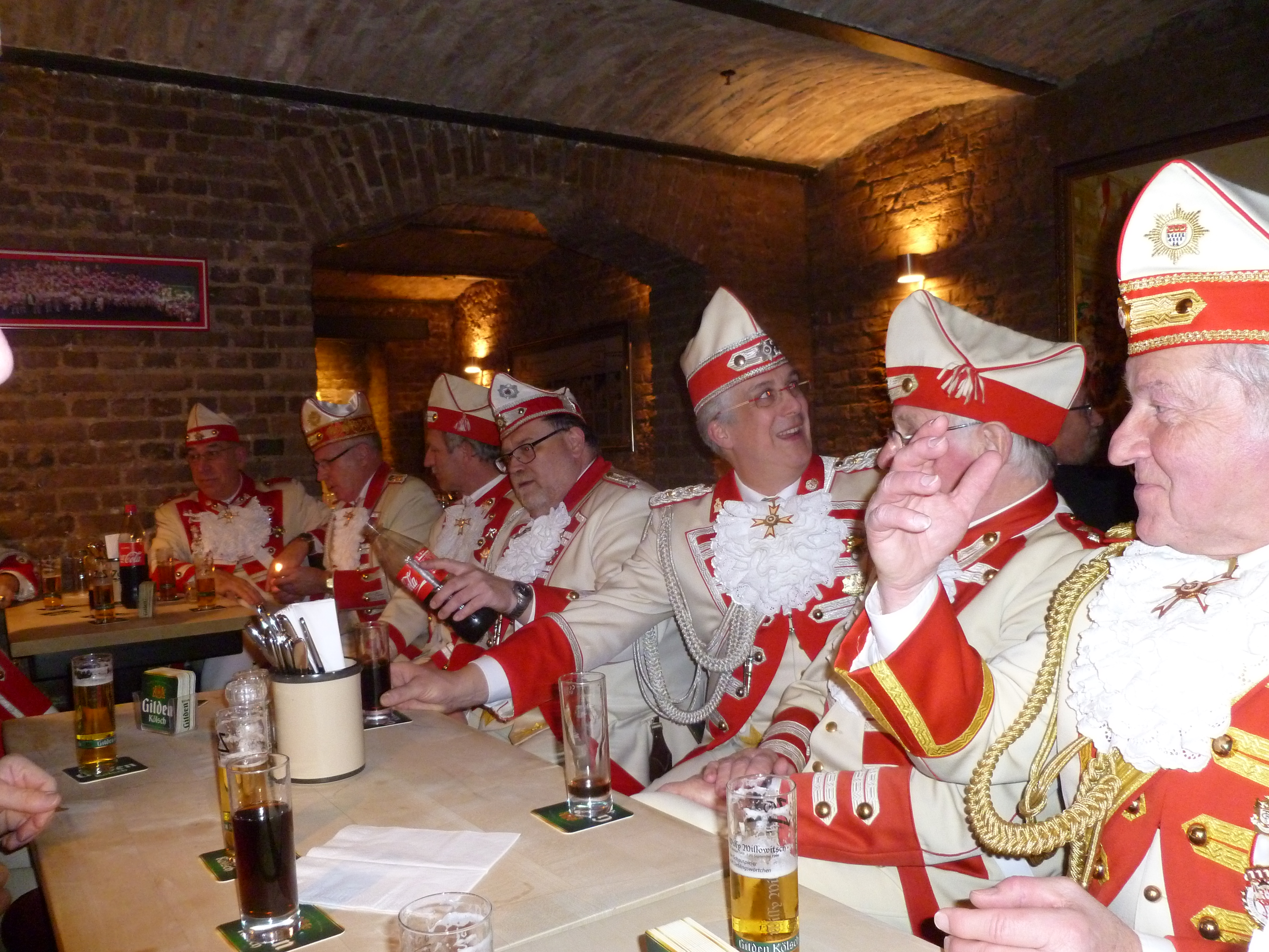 Selbst nach einem Auftritt in der „Residenz am Dom“ brauchte unser Equipechef Mani Block die Reihen nicht durchzuzählen. Eine etwas längere Pause am Mittag im Höhnerstall am Heumarkt und später im Zims kam aber allen Korpskameraden entgegen. Leider mussten wir an diesem Tag auch auf Prinz Stefan I. krankheitsbedingt verzichten. Aber das „Zweigestirn“ hat- auch dank der Mithilfe vom begeisterten Publikum in allen Sälen diese Hürde gut genommen.