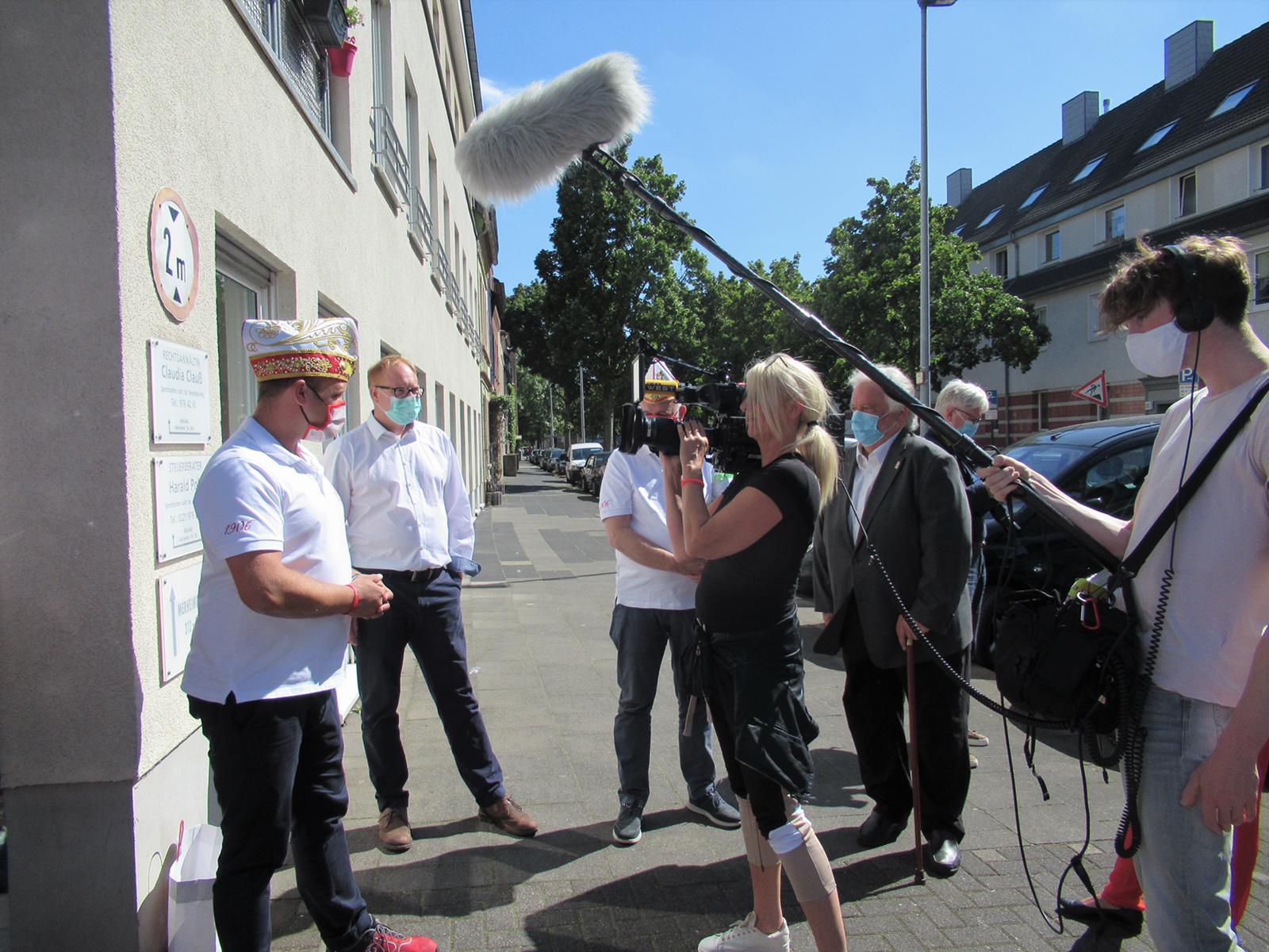 So hat eine Delegation der Prinzen-Garde Köln 1906 e.V. in seiner Rolle als Botschafter des Deutschen Kinderhospizvereins dem Kinderhospizdienst in Köln-Nippes einen Besuch abgestattet. Im Gepäck hatten Kommandant Marcel Kappestein und die Vertreter der vier Korpsteile symbolische Pakete voller Wurfmaterial und Orden, die mit Abstand, Krätzchen und Mundschutz hygienekonform übergeben wurden. Die schreibende Kölner Presse und RTL- West begleitete die Delegation der Prinzen-Garde zum Team um Günther Friedrich (Ehrenamtliches Vorstandsmitglied), Gregor Schmitz (Leiter der Ambulanz), sowie von Silke Keller und Martina Jurišić, von der Geschäftsstelle des Kinderhospizvereins in Olpe, die für die dort betreuten Kinder, Familien und Ehrenamtlichen die symbolische Wurfmaterialspende entgegen nahmen. Diese erkrankten Kinder und Familien konnten als besonders Betroffene dem Termin coronabedingt nicht beiwohnen.