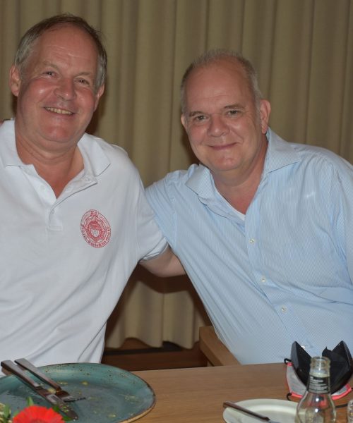 Uli war in den Jahren 1978-1984 Korpsspieß der Prinzen-Garde Köln. Da haben es sich einige seiner Vorgänger und einige seiner Nachfolger nicht nehmen lassen mit zu feiern. Und wann sieht man schon mal sieben Spieße nebeneinander in einem Schwimmbad? – eher selten. Diese findet man meist auf einem Grill und sind als „gegrillter Spieß“ berühmt geworden.