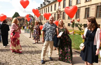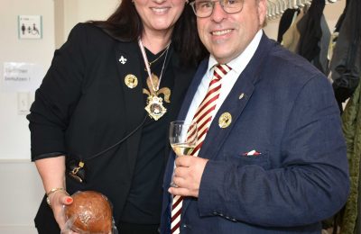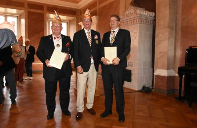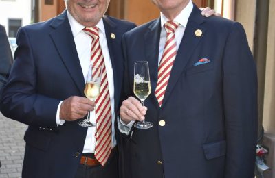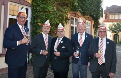 An jedem Tag unserer Korpstour in der Barockstadt verstärkte sich der Eindruck, die kölsche Reisegruppe ist willkommen und unsere Mentalität trifft auf Gegenliebe. Abends im Restaurant – Achtung! 1906 -, beim Sternekoch Patrik Spies und auch am nächsten Tag bei der närrischen Führung durch die Stadt wurden wir mit offenen Armen empfangen. Viele waren auch am Kölner Karneval interessiert und der Schlachtruf im Fuldaer Karneval „Föllsch Foll – Hinein“ klingt doch irgendwie ähnlich wie Alaaf. Selbst beim Empfang und der Führung im Dom zu Fulda durch Weihbischof Prof. Dr. Karlheinz Diez war Karneval bzw. Foaset, wie es hier heißt, ein Thema. Imposant und spannend war der barocke Dom und an der Grabesstätte des hl. Bonifatius spendete uns der Weihbischof den Bonifatius Segen. So gestärkt und „begleitet“ von 800 Musikern, die gerade in der Stadt unterwegs waren, machten wir uns abends auf zu unserem Galaabend im „Goldenen Karpfen“.