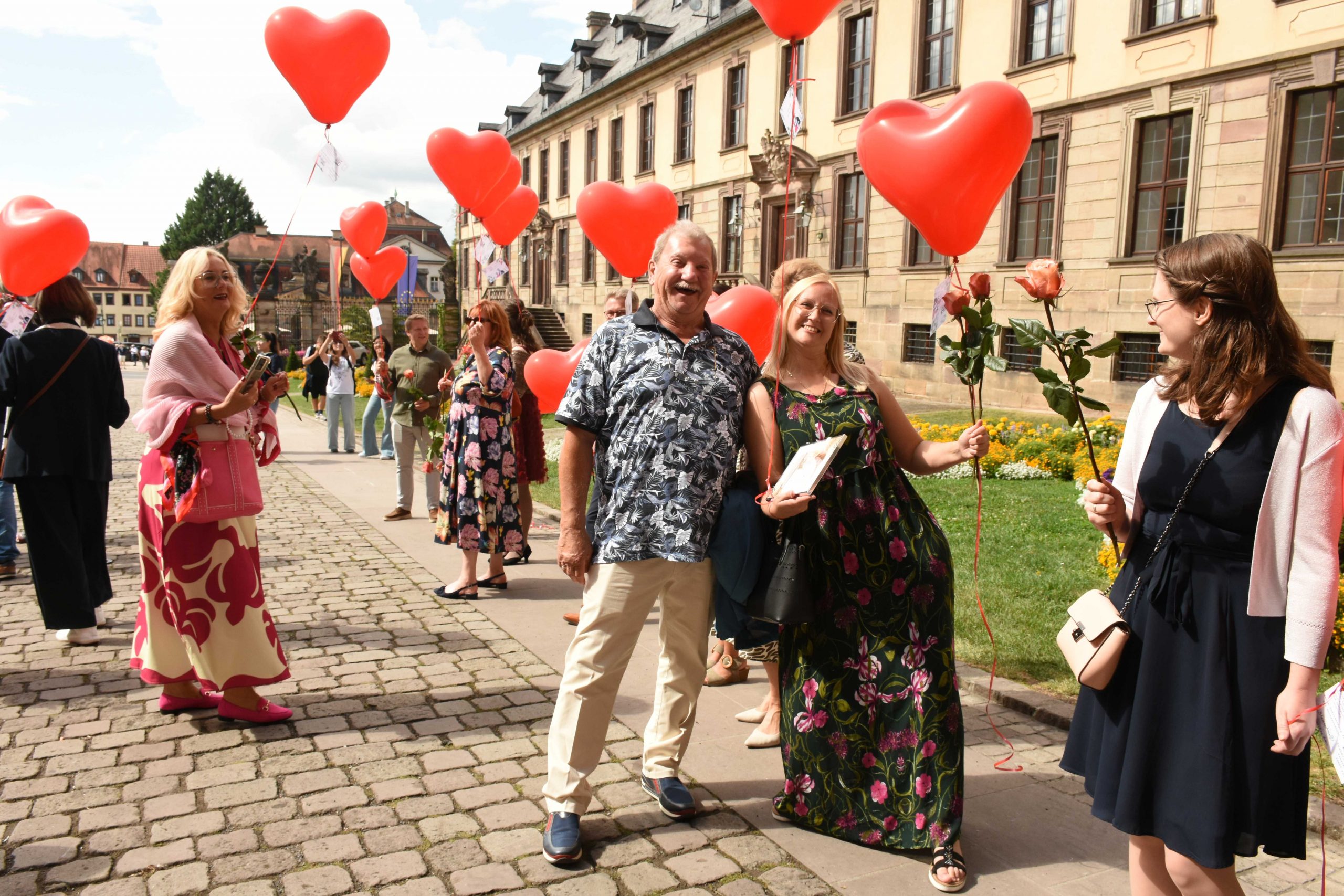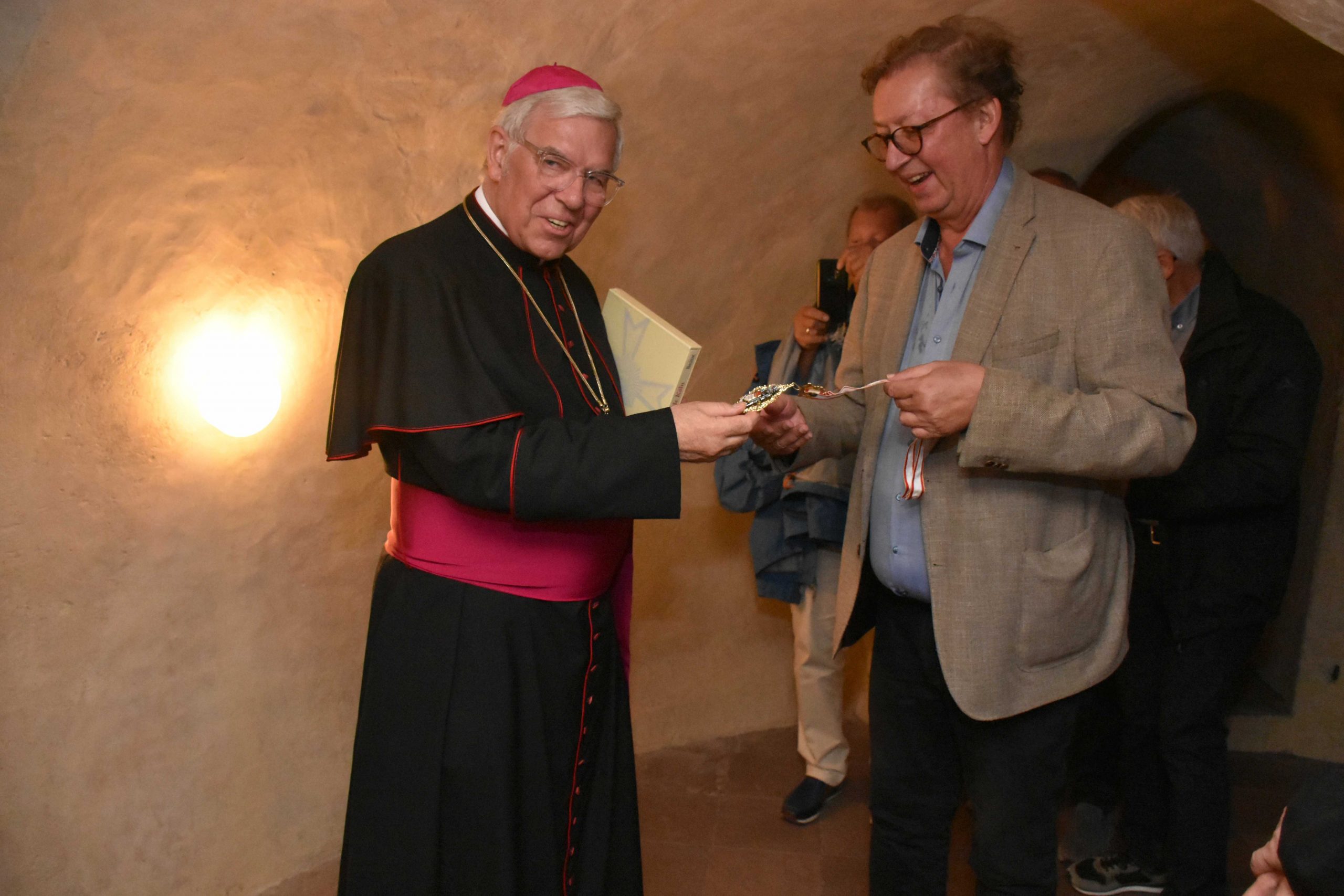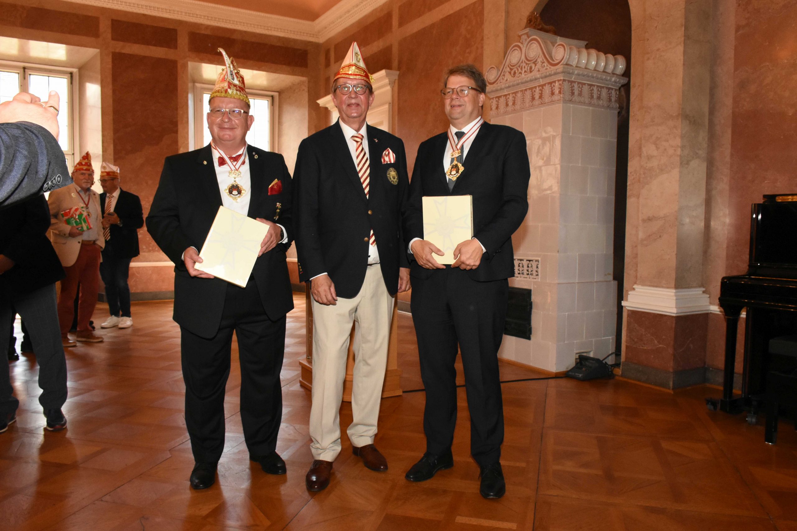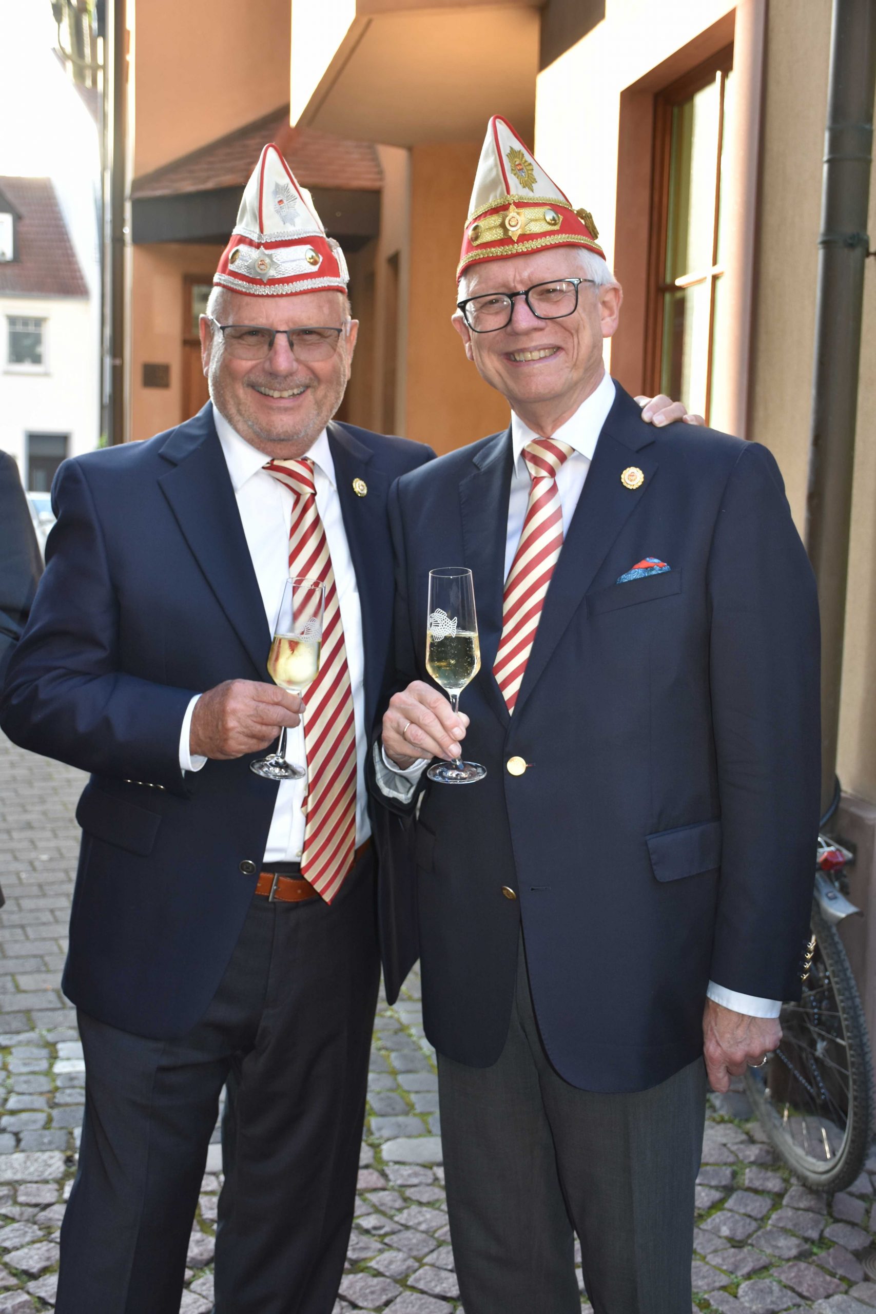 An jedem Tag unserer Korpstour in der Barockstadt verstärkte sich der Eindruck, die kölsche Reisegruppe ist willkommen und unsere Mentalität trifft auf Gegenliebe. Abends im Restaurant – Achtung! 1906 -, beim Sternekoch Patrik Spies und auch am nächsten Tag bei der närrischen Führung durch die Stadt wurden wir mit offenen Armen empfangen. Viele waren auch am Kölner Karneval interessiert und der Schlachtruf im Fuldaer Karneval „Föllsch Foll – Hinein“ klingt doch irgendwie ähnlich wie Alaaf. Selbst beim Empfang und der Führung im Dom zu Fulda durch Weihbischof Prof. Dr. Karlheinz Diez war Karneval bzw. Foaset, wie es hier heißt, ein Thema. Imposant und spannend war der barocke Dom und an der Grabesstätte des hl. Bonifatius spendete uns der Weihbischof den Bonifatius Segen. So gestärkt und „begleitet“ von 800 Musikern, die gerade in der Stadt unterwegs waren, machten wir uns abends auf zu unserem Galaabend im „Goldenen Karpfen“.