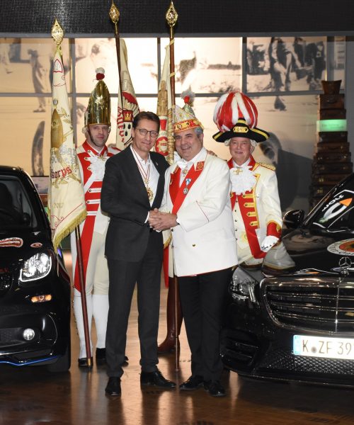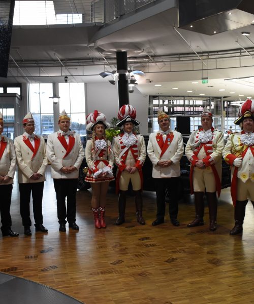 Wieder durfte die Prinzen-Garde Köln im schönsten Autohaus Europas eine stolze Autoflotte übernehmen. Mit den zwölf Top-Fahrzeugen kann die PG nun in der Session kreuz und quer durch Köln und Umgebung sicher zu ihren Auftritten fahren. Besonders angetan war Dino von seinem Plug-In Hybrid. Noch bemerkenswerter ist aber, dass der Grundgedanke unseres Leitbildes # Leidenschaft # Gemeinschaft # Tradition nun auch von der Fahrzeugflotte reflektiert wird.