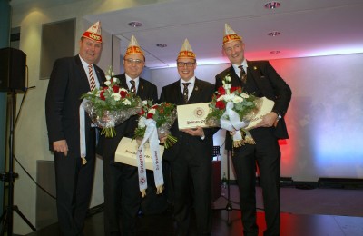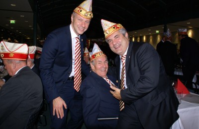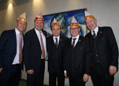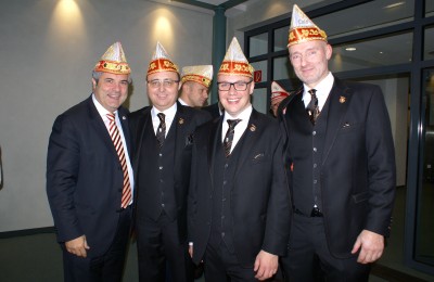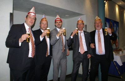 Präsident Dino Massi und Kommandant Marcel Kappestein stimmten das Korps mit ihren Reden auf die neue Session ein und beide blickten noch einmal auf die sehr erfolgreiche Session zum 111-jährigen Bestehen der Prinzen-Garde zurück. Dann hatte das designierte Dreigestirn den ersten großen Auftritt und konnte schon mal zeigen, wie es sich dem närrischen Volk präsentieren will. Zwei Überraschungsmomente gab es, als unser neuer Adjutant des Prinzen, Michael Palm, zum Leutnant befördert wurde und als Michael Dreeser Dino eine alte Bronze Figur übergab, die wunderbar in unseren Turm passt. Als dann unser Spielmannszug aus Uerdingen einzog, hielt es keinen Prinzengardisten mehr auf seinem Stuhl.