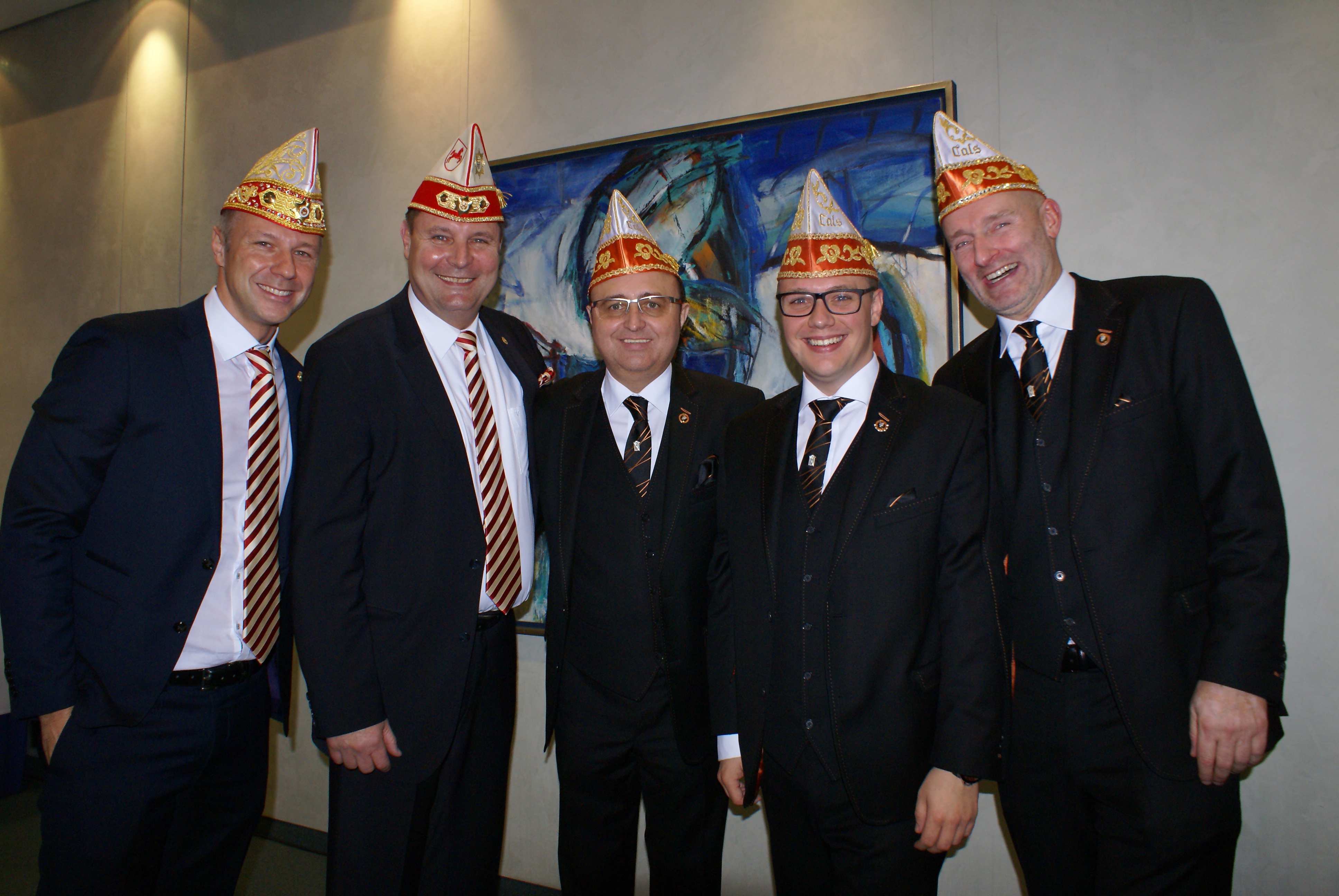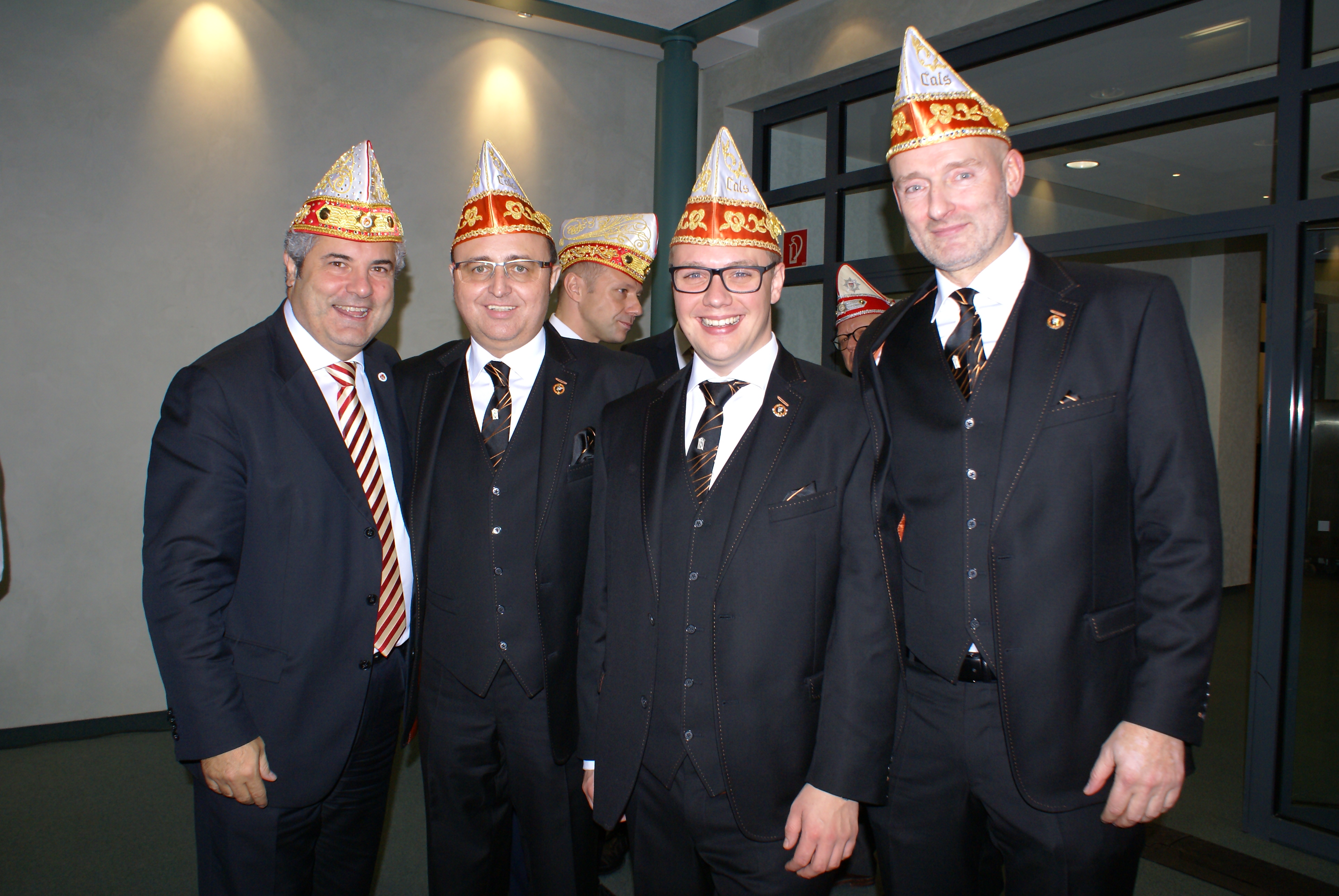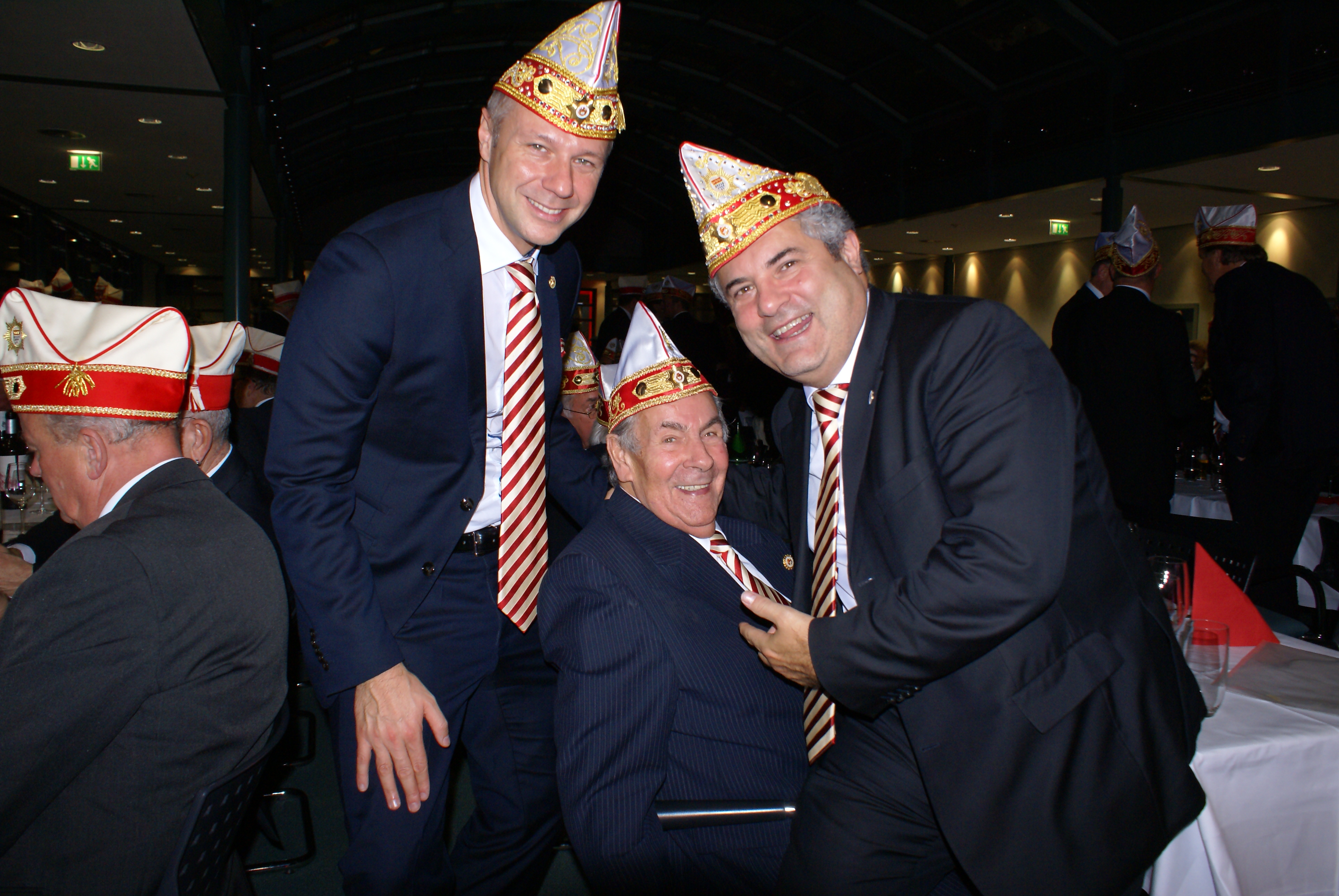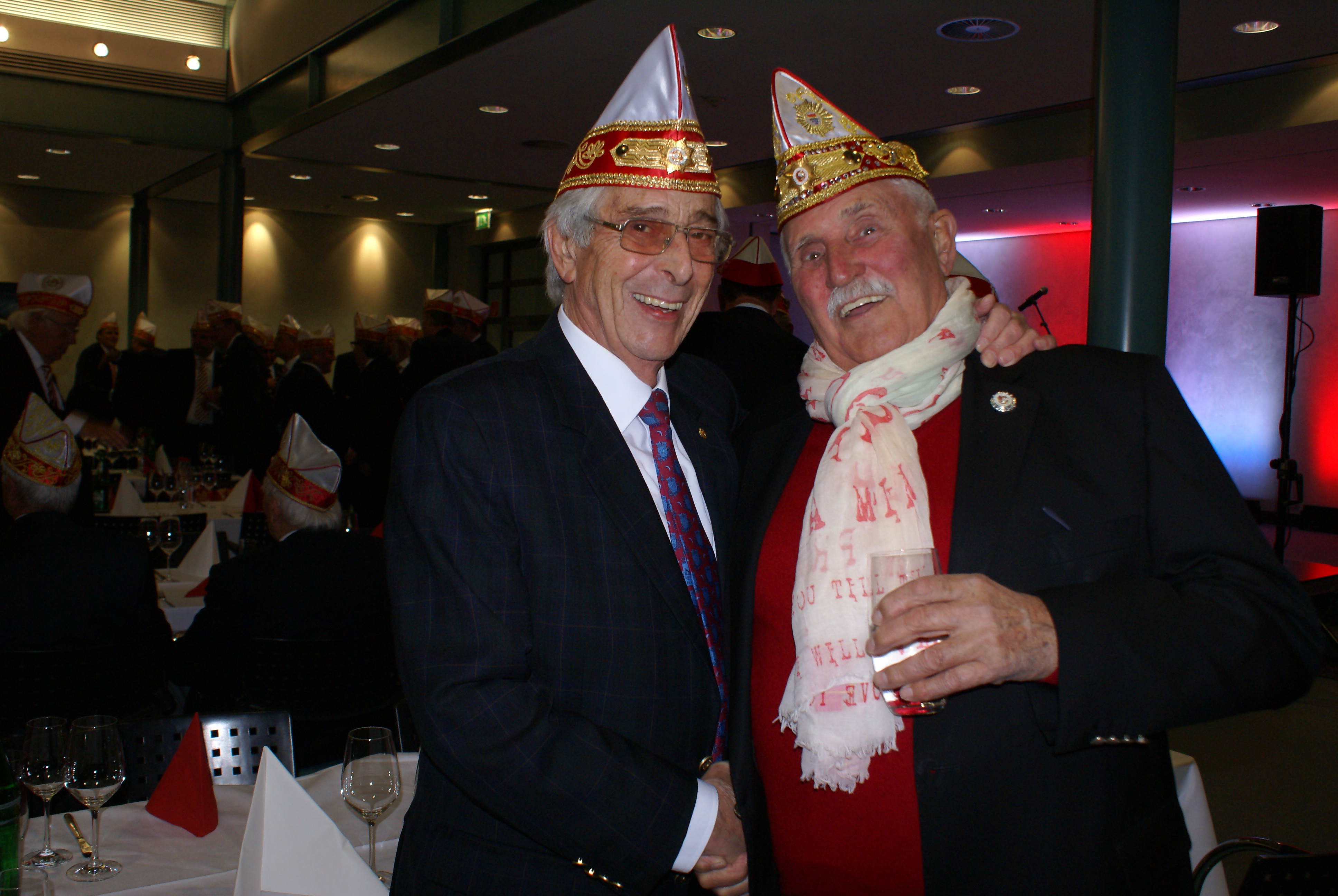 Präsident Dino Massi und Kommandant Marcel Kappestein stimmten das Korps mit ihren Reden auf die neue Session ein und beide blickten noch einmal auf die sehr erfolgreiche Session zum 111-jährigen Bestehen der Prinzen-Garde zurück. Dann hatte das designierte Dreigestirn den ersten großen Auftritt und konnte schon mal zeigen, wie es sich dem närrischen Volk präsentieren will. Zwei Überraschungsmomente gab es, als unser neuer Adjutant des Prinzen, Michael Palm, zum Leutnant befördert wurde und als Michael Dreeser Dino eine alte Bronze Figur übergab, die wunderbar in unseren Turm passt. Als dann unser Spielmannszug aus Uerdingen einzog, hielt es keinen Prinzengardisten mehr auf seinem Stuhl.