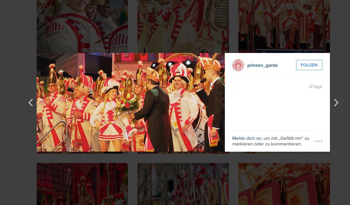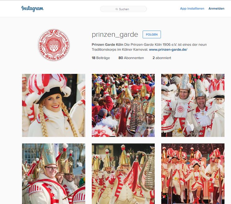 Jeder kann die Bilder und Videos online anschauen, dazu sind kein Instagram-Account oder eine App notwendig. Über einen eigenen Instagram-Account kann man der Prinzen-Garde folgen und die Bilder liken. Wir freuen uns über viele neue Fründe, die uns nohgonn un zoluure (Follower)!