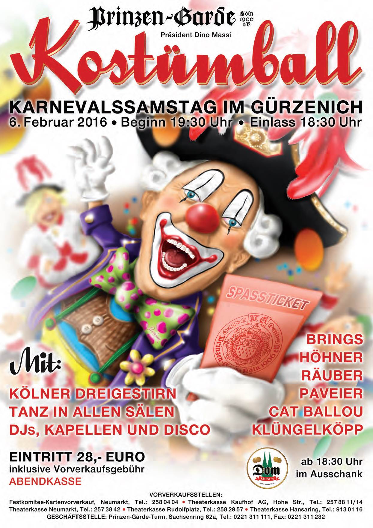 Auch am Karnevalssamstag gibt es die Möglichkeit gemeinsam mit der Prinzen-Garde ausgelassen zu feiern. Der traditionelle Kostümball findet in allen Räumen des Gürzenich statt. Dabei sind: