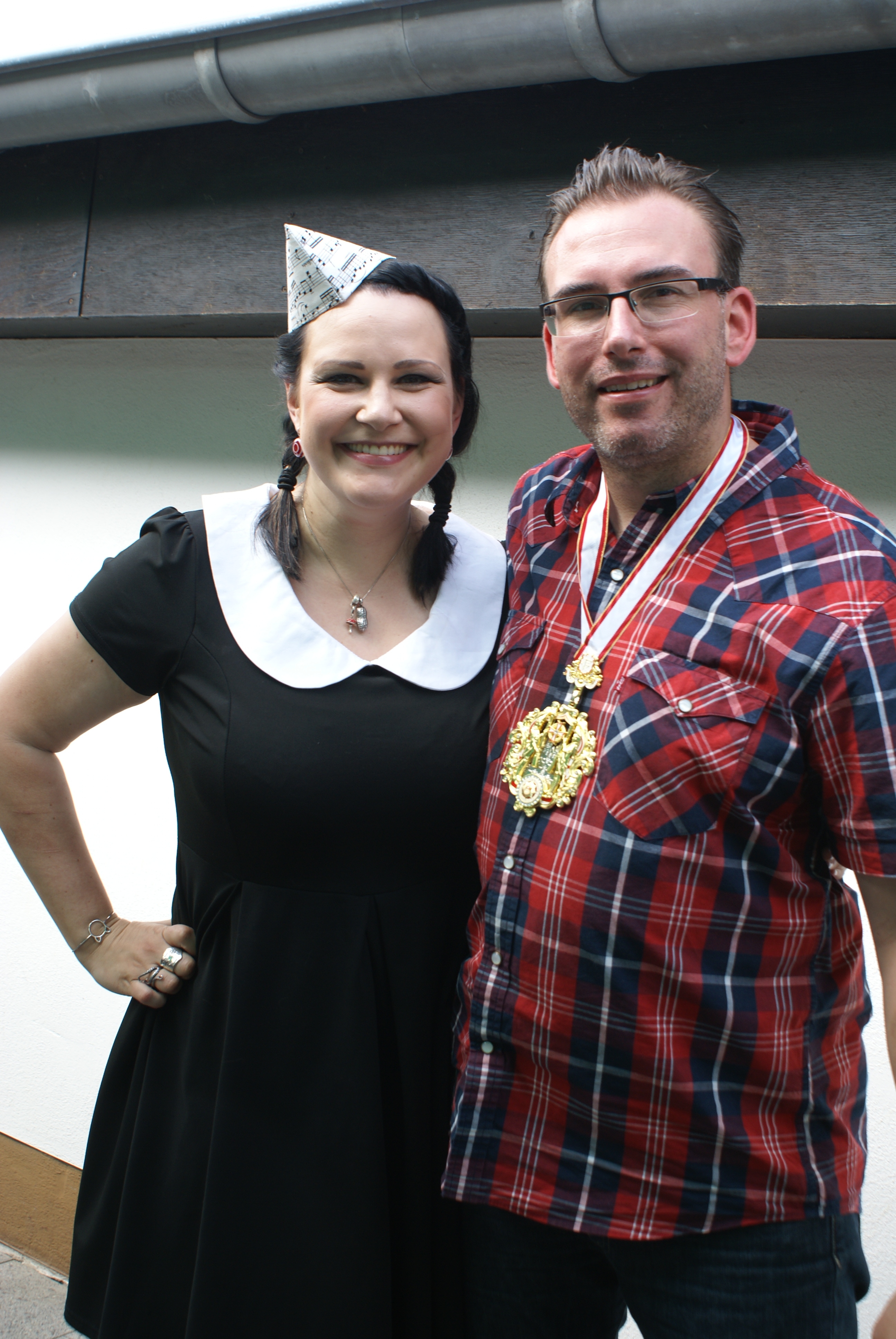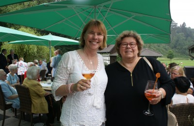 Nach dem Spargelessen ging es raus auf die Terrasse zu Kaffee, Kuchen und endlich frischer Luft. Dort wartete auch schon das Krätzchen Duo Ele und Rickes auf die Besucher. Sie spielten einige Stimmungslieder von bekannten Kölner Bands und sorgten damit für angenehme Unterhaltung.