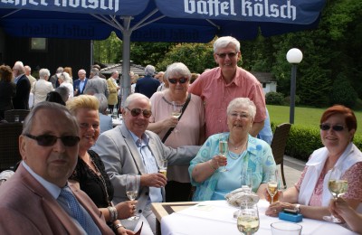 Ausgeklungen ist das Spargelessen auf der neu gestalteten Terrasse des Naafs-Häuschen, die eine filmreife Kulisse für einen Film von Rosamunde Pilcher bot: Denn hier traf sich eine elegante Gesellschaft, im Hintergrund ein Golfclub und auf dem Parkplatz fanden sich einige dazu passende Nobelkarossen.