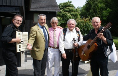 Aber eine Änderung gab es in diesem Jahr. Seit kurzer Zeit ist Jürgen Wicharz der neue Reservekorpsführer, der es aber dieses Mal noch gerne Herbert Winand überließ, die 85 Gäste zu begrüßen. Denn das Spargelessen im Naafs-Häuschen ist Herbert`s „Kind“, hatte er doch diese Veranstaltung vor vielen Jahren ins Leben gerufen. Sicher wird diese schöne Tradition auch unter dem neuen Reservekorpsführer weiterleben. Auf sehr humorvolle Weise fand Herbert die passenden Worte zur Einstimmung auf diesen Tag und freute sich besonders, unseren Präsidenten Dino Massi und seine Frau Babette als Ehrengäste begrüßen zu können. Aber auch Dino und Jürgen richteten einige Worte an die Scheunenbesucher und dankten allen Gäste für die jahrelange Treue zum Reservekorps und ihrem Ehren-Reservekorpsführer Herbert Winand. Musikalisch begleitet, hat uns an diesem Tag die Kapelle Paul Deck, die mit flotten aber manchmal auch melancholischen Liedern für Unterhaltung sorgte.