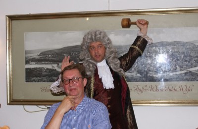 Nach dem Stadtrundgang und einer Bootsfahrt auf Fulda und Werra, war es dann Zeit zur Einkehr in den Rathauskeller. Für Reservekorpsführer Jürgen Wicharz lief es aber nicht ganz so glatt, denn er musste sich noch einem „Gesundheitscheck“ durch den legendären Dr. Eisenbarth unterziehen. Erst dann konnte auch er am rustikalen Abendbuffet teilnehmen.