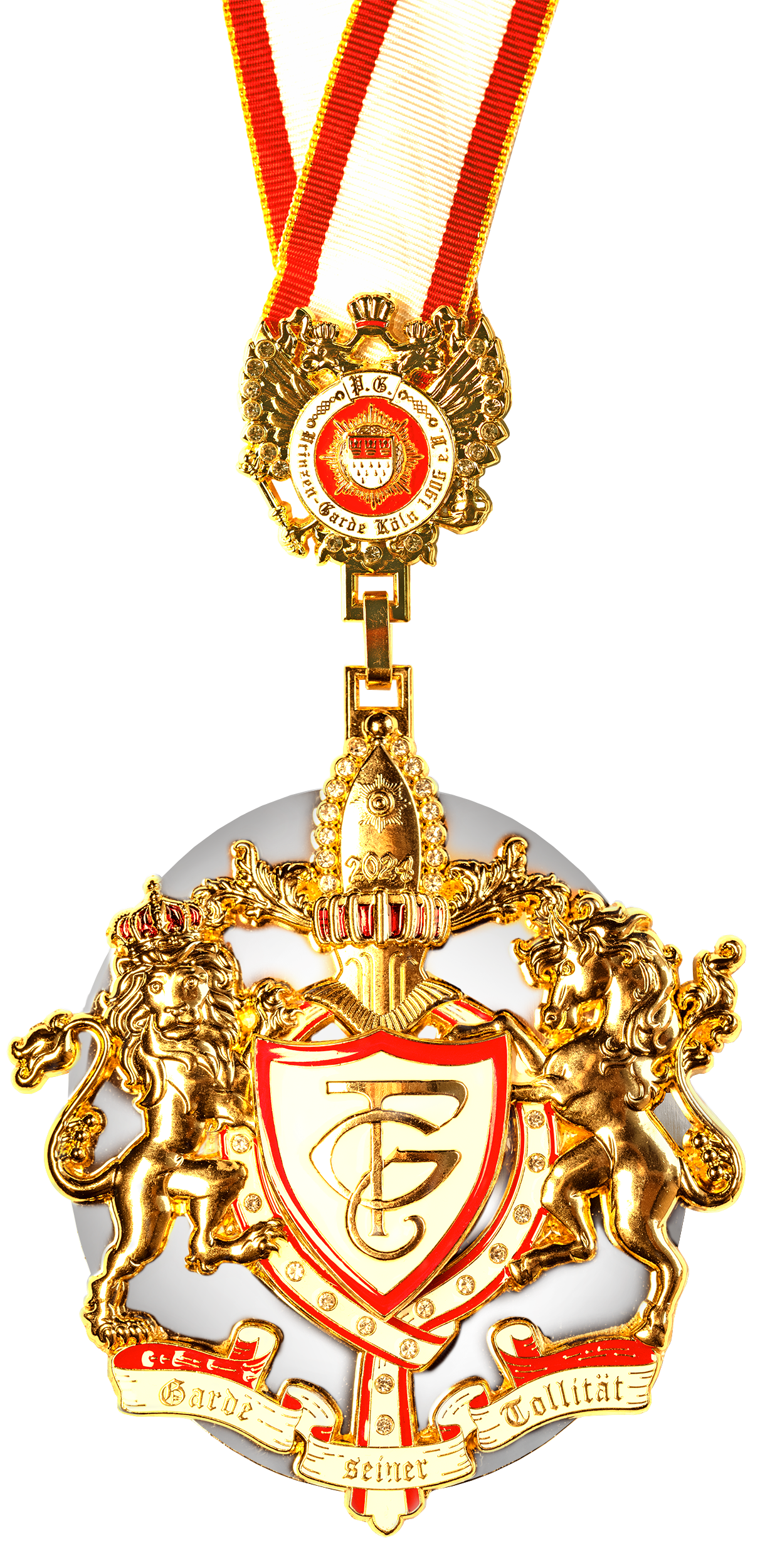 Die Prinzen-Garde ist das ständige Begleitkorps des Prinzen Karneval und stellt dem Kölner Dreigestirn täglich eine stattliche Wache. Das Kölner Dreigestirn ist so etwas wie das „Kölner Königshaus“, es ist die höchste Repräsentanz des Kölner Karnevals. Daher wurde als Grundidee für den Sessionsorden 2024 das Wappen des britischen Königshauses verwendet. Dieses wurde natürlich an die Prinzen-Garde angepasst: Farblich dominieren selbstverständlich die Gesellschaftsfarben Weiß und Rot und mittig ist das „PG-Wappen“ eingelassen.