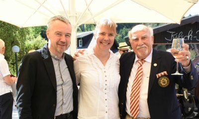 Anders als bei „Dinner for One“, bei welchem am 90. nur noch das Geburtstagskind übrig geblieben ist, freute sich Jürgen Wicharz über folgende Ehrengäste: Schriftführer Marcus Gottschalk, Vorstand Hermann Sauer, unser Tanzpaar Sandra und Tommy, Korpsadjutant Wolfang Gogol und wie oben schon erwähnt Kommandant Marcel Kappestein.