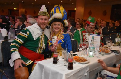 Als Tina und Alex mit dem Korps einzogen ahnten sie vielleicht, dass es heute etwas anders läuft als in den sieben Jahren zuvor. Und so war es dann auch. Nach dem „letzten Tanz“ durften beide im Elferrat Platz nehmen und die Sitzung verfolgen. Hier wurde es gegen Ende etwas voll, denn auch das Dreigestirn, diesmal begleitet von unserer Oberbürgermeisterin Henriette Reker in der Equipe, durfte sich nach ihrem Auftritt dort dazugesellen. Spätestens hier müssen sie etwas geahnt haben. Als sich dann nach und nach verschieden Tanzpaare aus anderen Gesellschaften an einem „abgelegenen Tisch“ trafen, war klar – hier passiert noch etwas Großes.