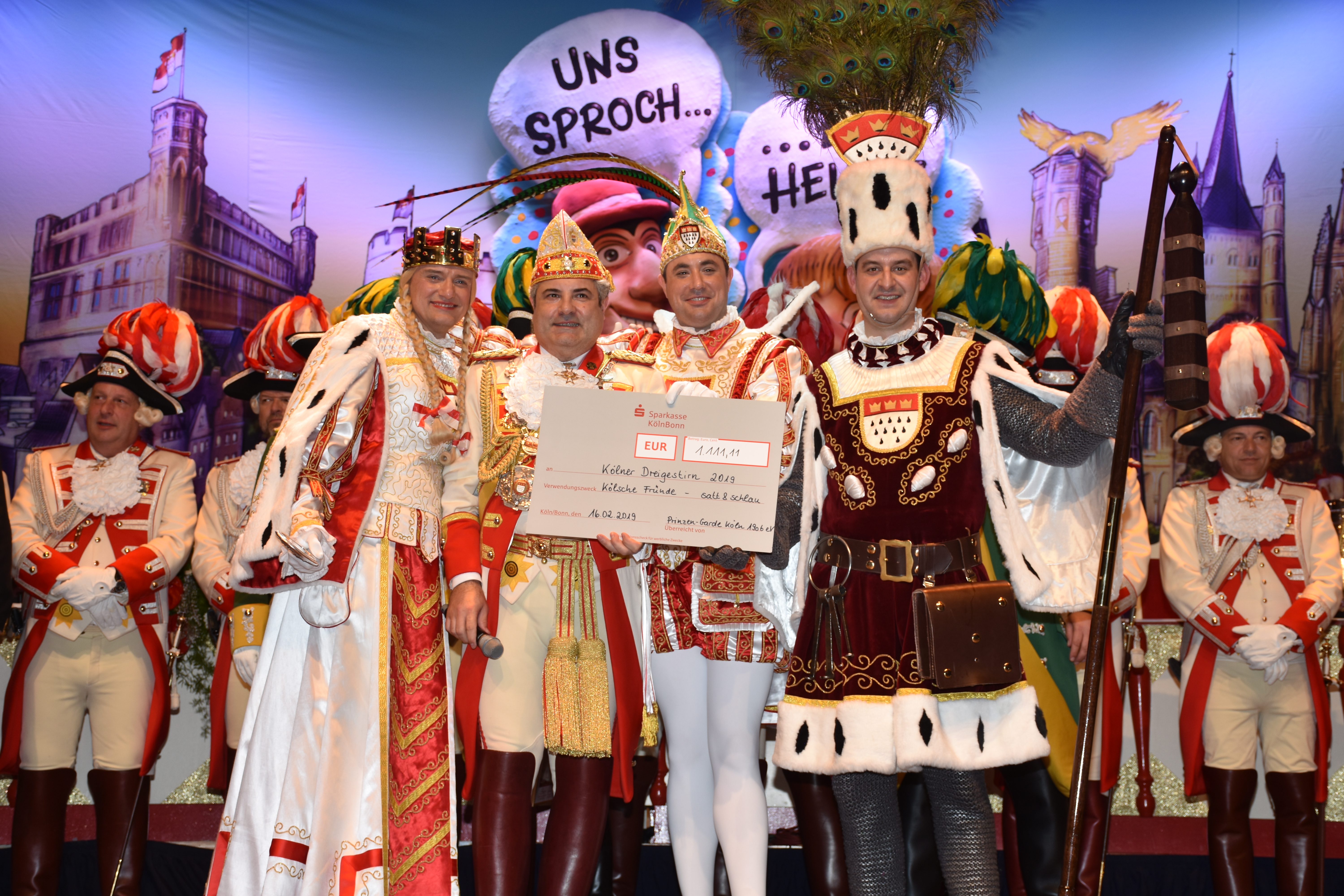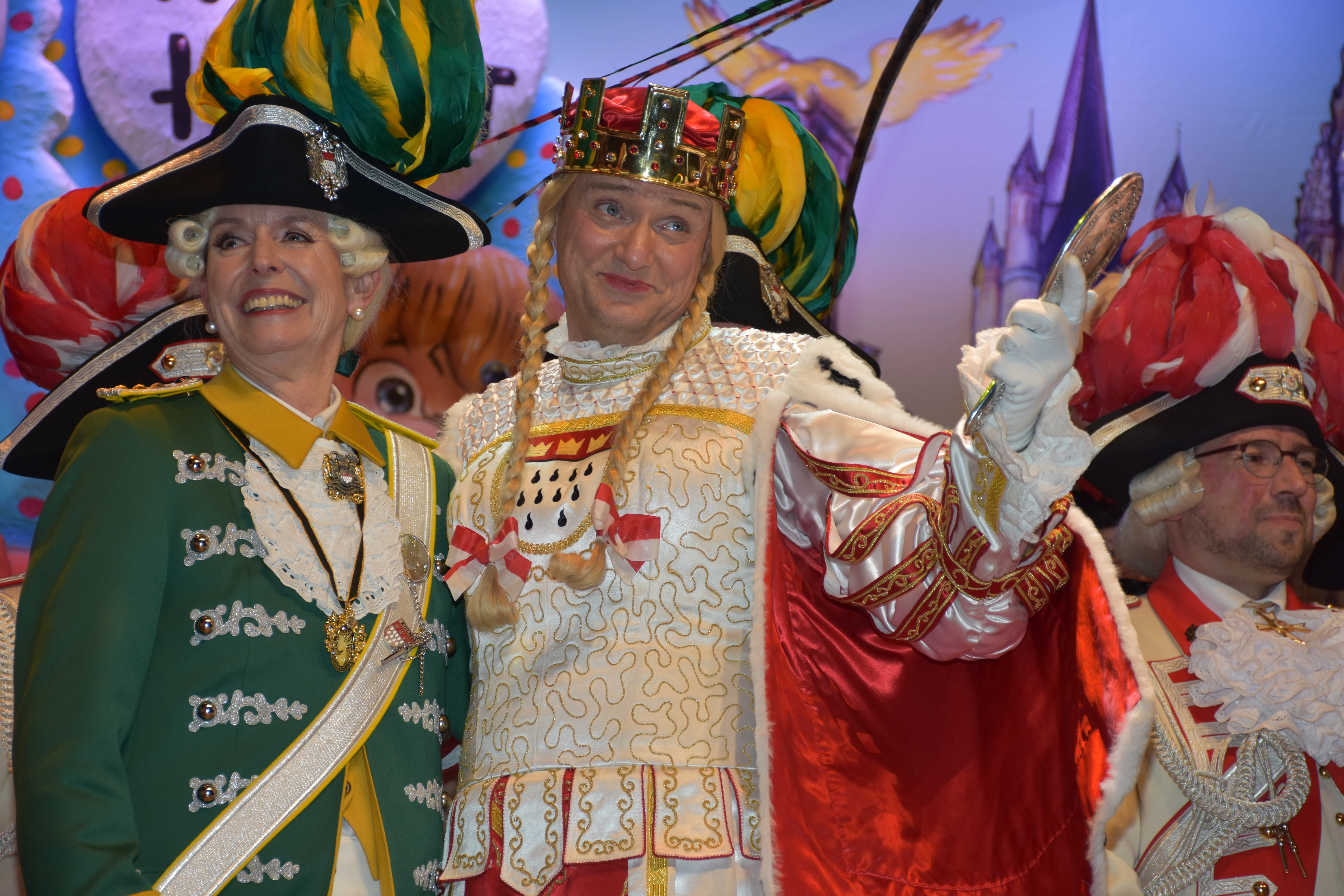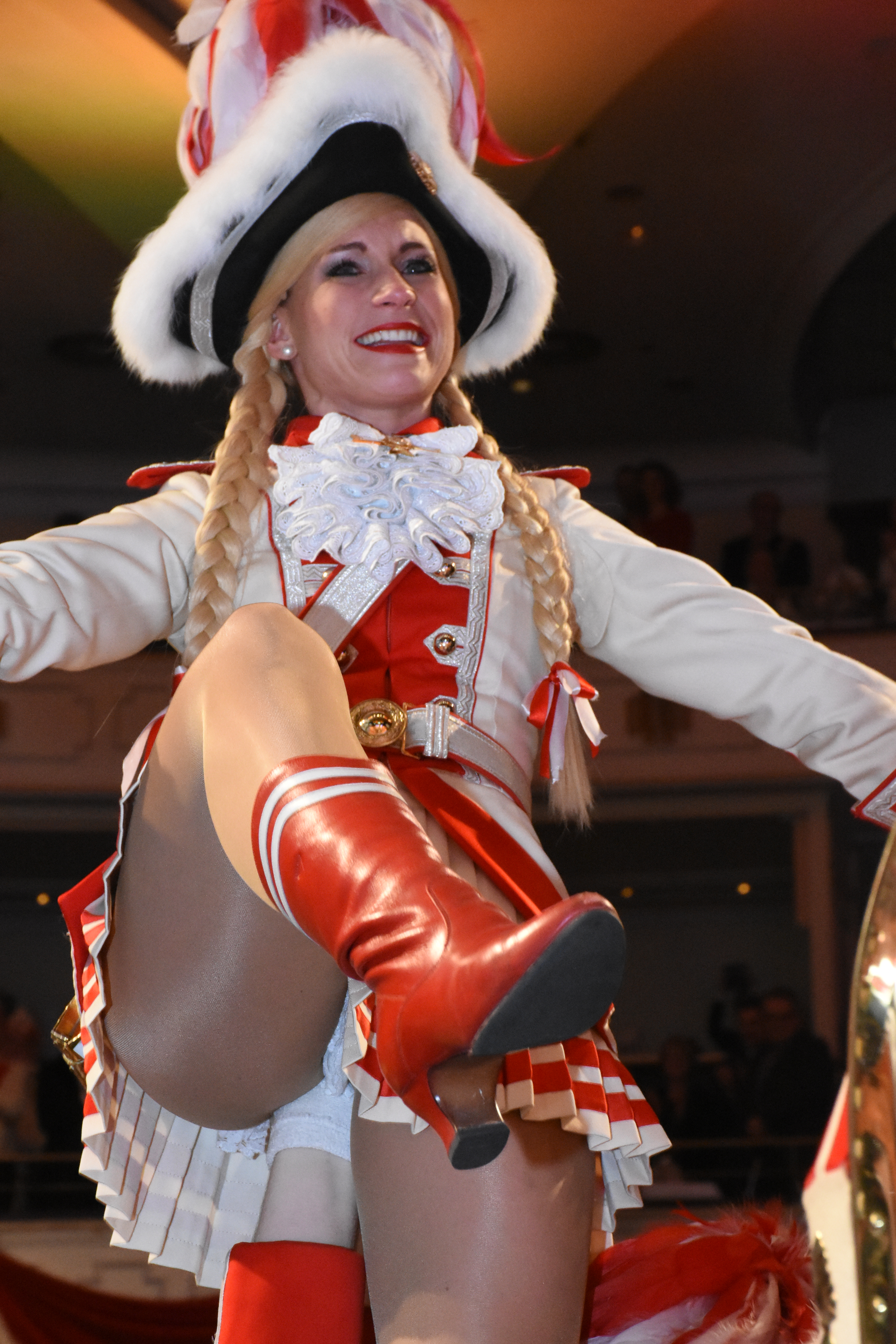 Als Tina und Alex mit dem Korps einzogen ahnten sie vielleicht, dass es heute etwas anders läuft als in den sieben Jahren zuvor. Und so war es dann auch. Nach dem „letzten Tanz“ durften beide im Elferrat Platz nehmen und die Sitzung verfolgen. Hier wurde es gegen Ende etwas voll, denn auch das Dreigestirn, diesmal begleitet von unserer Oberbürgermeisterin Henriette Reker in der Equipe, durfte sich nach ihrem Auftritt dort dazugesellen. Spätestens hier müssen sie etwas geahnt haben. Als sich dann nach und nach verschieden Tanzpaare aus anderen Gesellschaften an einem „abgelegenen Tisch“ trafen, war klar – hier passiert noch etwas Großes.