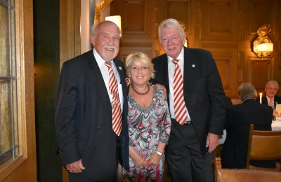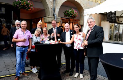 Tag zwei begann mit einer Stadtführung durch den historischen Kern von Münster. Zur Unterstützung der Tour haben sich an diesem Tag noch unser Kommandant Marcel Kappestein und Literat Dennis Hille dazugesellt. Am Nachmittag noch eine Bootsfahrt mit allen Mann auf dem Aasee, dann etwas Freizeit, bevor es am Abend richtig feierlich wurde. Im Lambertuszimmer des historischen Gasthauses „Stuhlmacher“ fand unser Galadinner statt. Jürgen Wicharz begrüßte seine Korpskameraden und zwei Vertreter der Prinzengarde Münster sehr herzlich zu dem Dinner. Draußen beim Stadtfest sang Jan Delay seine Songs und drinnen bei uns trug der Kiepenkerl seine Lieder und kleine Geschichten vor. Mehr Kontrastprogramm geht nicht und beide sind gut angekommen. Zum Abschluss des Tages der Klassiker: Ein Absacker an der Hotelbar bis tief in die Nacht.